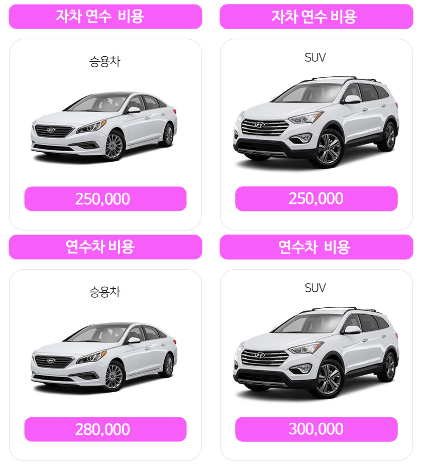 ☆ 유료 주차장 요금 및 고속도로 연수 시 발생되는 비용 외에 추가 비용은 일절 없습니다.